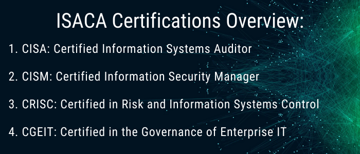 ISACA certifications are globally recognized and highly in-demand throughout the world. According to a survey, all four CISA, CISM, CGEIT and CRISC- ISACA certifications are among the top ten highest paying IT certifications.