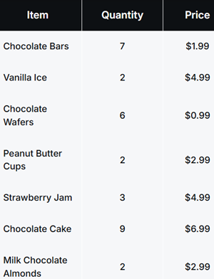 07. A data analyst receives the following sales data for a convenience store: